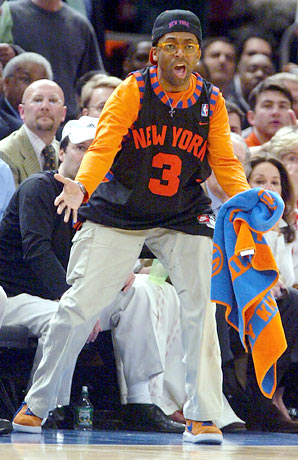 我在電視機上看見過Spike Lee不下數十次,他站在NBA紐約人的麥迪遜花園主場場邊跳來跳去,看見他深愛的紐約人被紐約剋星Michael Jordan, Reggie Miller等修理,一個大喜大怒,情緒激烈的紐約球迷,和湖人主場的Jack Nicholson相映成趣。