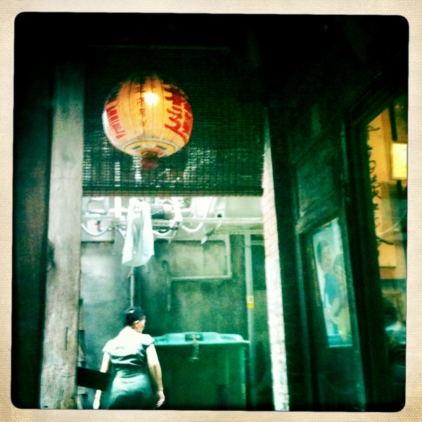 用新買的iPhone App拍下的懷舊照,碰巧有個「花樣年華」的旗袍阿姨經過。