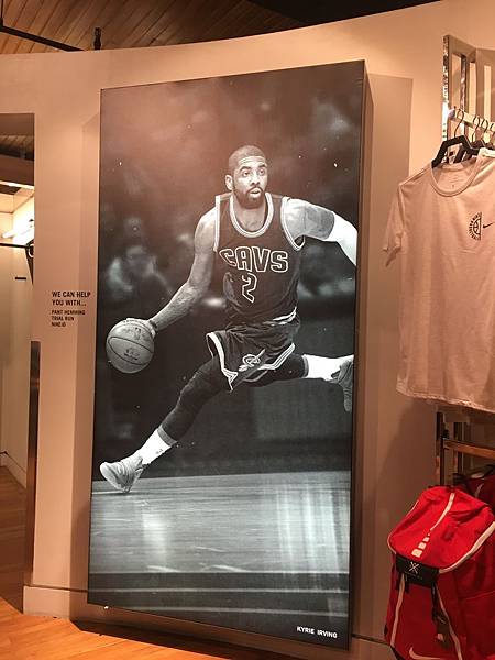 Nike 旗艦店內有騎士雙雄King James, Irving的人型海報,大概是近年Nike贊助最成功的東岸明星代言人。可能在東岸關係,沒有西岸球星例如Durant的海報。