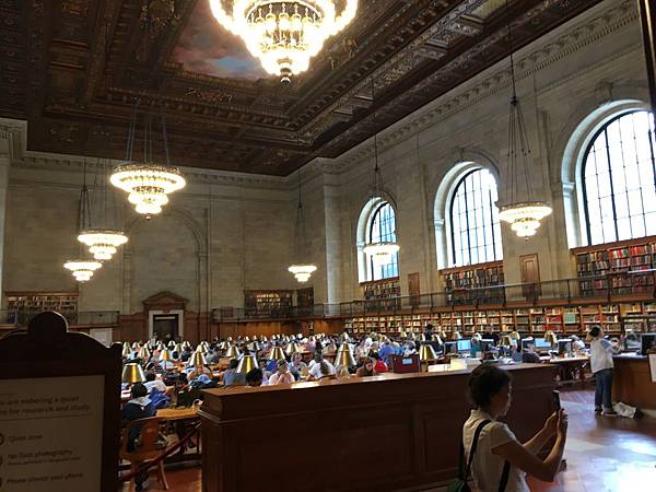 New York Public Libray, 非常高且古色古香的天花設計,坐在裡面讀書感覺清高啊。