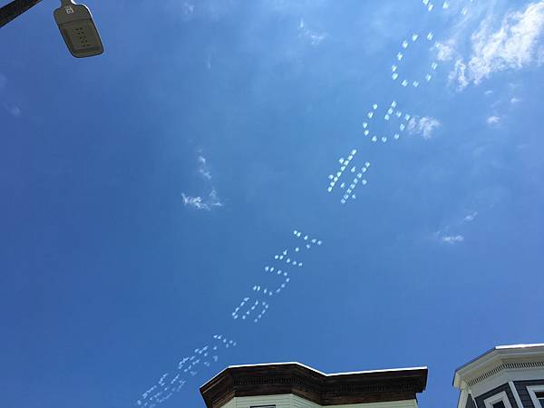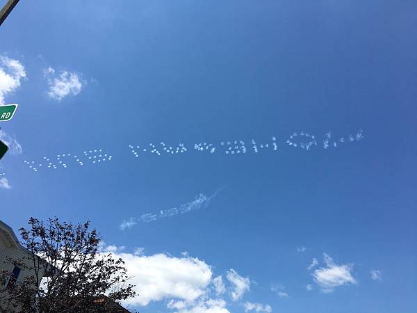 聽到一陣飛機引擎聲,抬頭,看見真正的雲端廣告! 不過這種廣告很快就隨風而逝。不容易分辨。