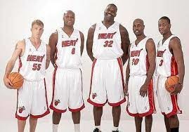 Lebron James 生於1984年12月, 假設他從12歲開始懂得思考籃球隊組織這件事,他生命中第一次見證三連霸是公牛96-98有三巨頭Jordan, Pippen, Rodman, 加上一堆功能球員。然後是西霸天十年的馬刺三劍客Duncan, Parker, Ginobili, 期間一代梟雄空中飛豬Barkley退休前二度抱團Houston建立三劍客(先跟Olajuwon, Drexler, 後來Drexler換成Pippen),再來是KO連線最後演變成Big 4 ,即使功敗垂成,最後ONeal 憤怒出門加入熱火,拉攏一幫臨退休前的老鬼組成明星球隊,ONeal, Mourning, Walker, Payton, Williams, 加上一個天才新秀閃電Wade, 最後一舞成功奪冠。Wade是James的同梯隊第五名,奪冠比James早且勇奪FMVP,對於James必定打擊不小。這時候James得到的教訓可能有三個: 一抱團奪總冠機會比較大,最少要有三顆星。二即使抱團也要奪冠總好過抱憾終身。三,太老抱團可能來不及如Barkley, Malone.