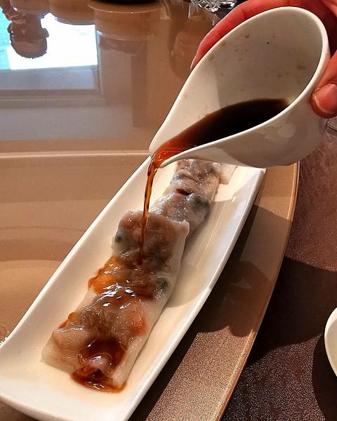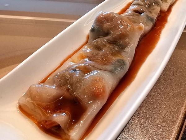 梅菜叉燒腸,搭配甜醬油。正宗水準以上,隱約有梅菜甘香,粉皮也夠薄,滿滿的餡料,另一道5分以上。