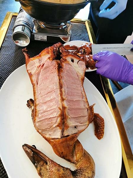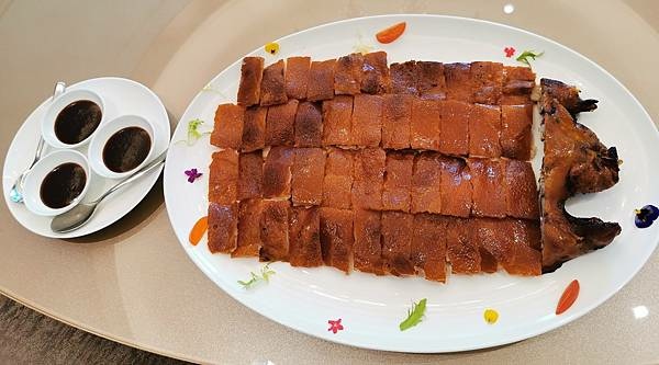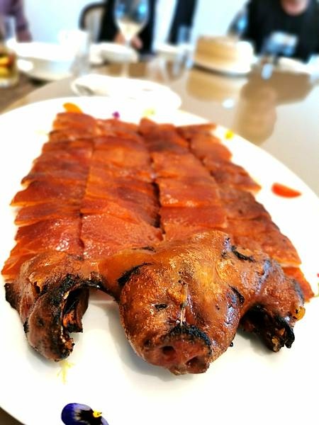 燒乳豬,那個乳字就是剛出生的稚嫩之意。在台灣近十多年,沒吃過這麼小只的原隻乳豬。應該只有十至十五日大小。乳豬是愈小只愈貴,這只乳豬開價八千八,全長只有四十公分,龍都酒樓的乳豬最少大牠一倍。色香味俱全。本應給滿分。但他當我瞎的嗎?居然把四只小豬腳拿走了...多少貴客在場,我也不好太機車,只好記在心裡。4.5分