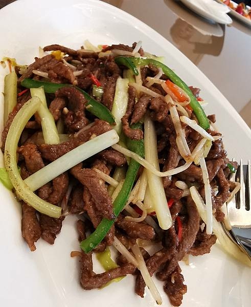 片皮鴨本是北方菜,但香港人把之發揚光大,發明不浪費三吃。火鴨炒肉絲,把剩餘的絲剝出來,炒銀芽青椒芹菜辣椒等。這炒鍋吃下去感覺差一點,想了一想原來是缺了咸酸菜(味菜),感覺整個層次和香味就寡了。4分
