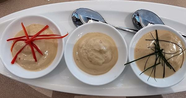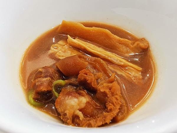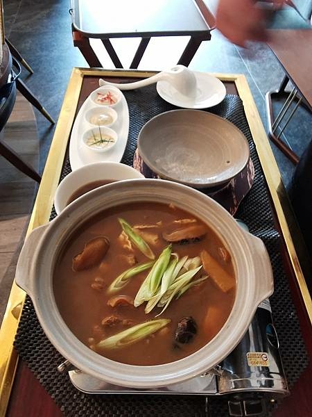再來是羊腩煲。廣果羊腩煲基本上不用藥膳,皮帶肉,清潤嫩滑。這羊腩煲在水準之上。4.5分。扣除分數是醬料。台灣的豆腐乳五花八門各有特色,應該調出三種味道讓客人品嚐才算夠意思。這道菜顯然尚未用功思考過。