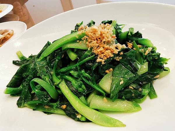 蒜蓉炒芥蘭。這芥蘭菜綠意盎然卻細嫩,一吃就知道是進口的。本地芥蘭菜都比較粗壯。他炒的時候似乎忘了用紹氣回鍋,差了一點點火候。4.5分