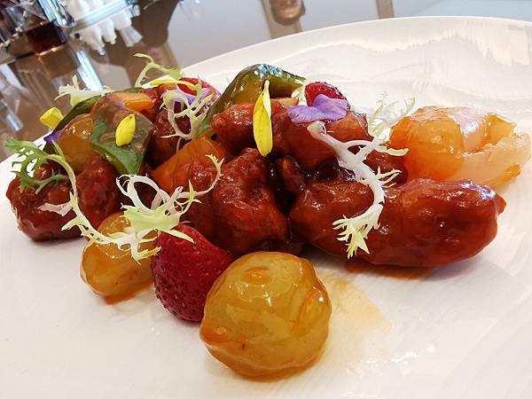 考驗炒廚其中一道菜是咕嚕肉,這咕嚕肉不脆不嫩味道也不對,也沒有用鳳梨,卻加了堆無厘頭水果。2.5分