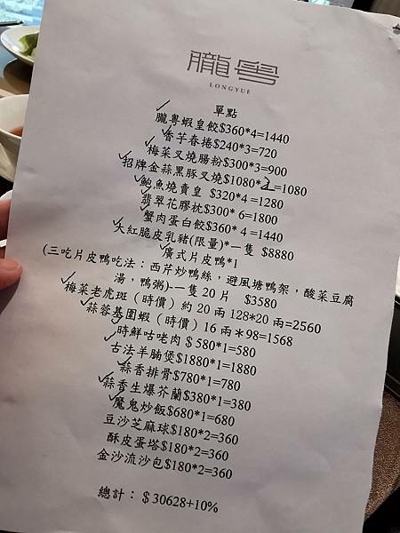 最後意思意思,免了兩瓶開瓶費,但不免烈酒,只免了紅白酒,感覺就有點小器。所以我也只好用小器的方式,最高規格的標準,來評價這家號稱最高規格的粵菜餐廳了。拉上補下,總評4.3分,建議三五知己,去飲個菜吃點心,切盤叉燒最實惠。