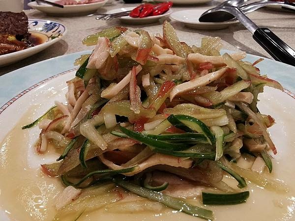 前菜三碟,滷水牛肉牛肚牛筋的拚盤,當季冷筍,自製沙拉,傳統得來搭配得宜。