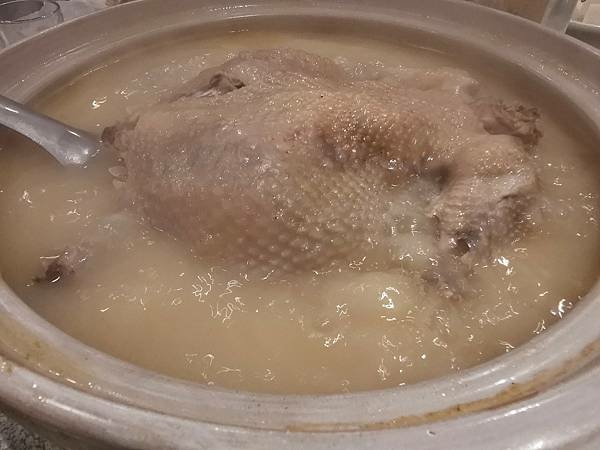 一大鍋熱騰騰的砂鍋雞湯。
