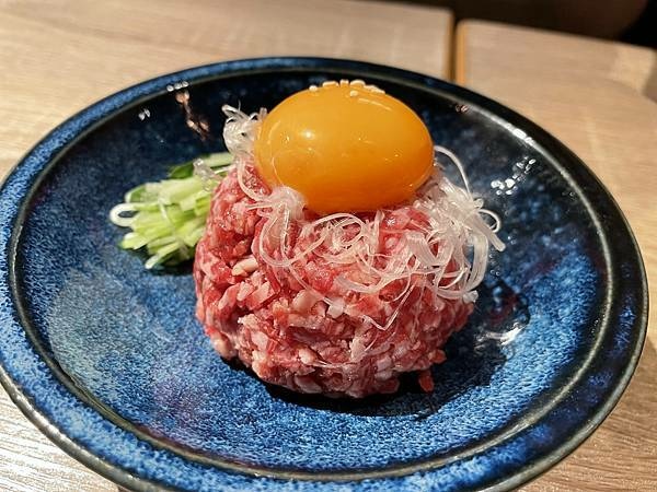 正宗的和牛生牛肉,白色的油花幾乎與紅色的內各佔一半,入口即融,配啤酒也會覺得膩,只適合配紅酒。
